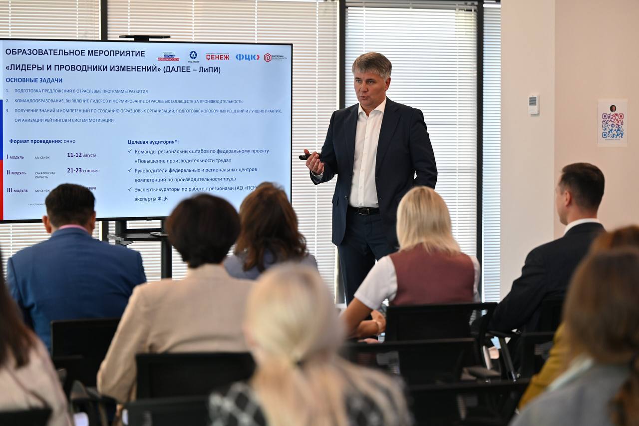 Около 50 управленцев из 10 регионов — руководители региональных штабов, центров компетенций, представители профильных министерств — изучали бережливые, человекоцентричные и цифровые подходы к росту производительности с акцентом на практику - через знакомство с лучшими практиками Сахалинской области.